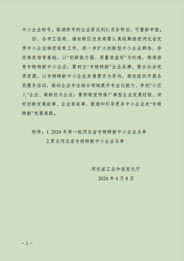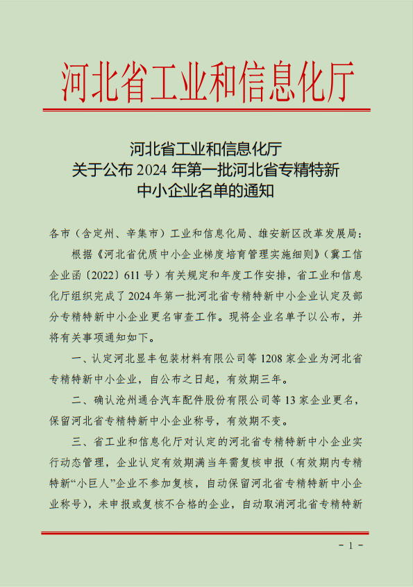 近日,中繹集團(tuán)榮獲河北省工業(yè)和信息化廳授予的“河北省專精特新中小企業(yè)”榮譽(yù)稱號(hào)。